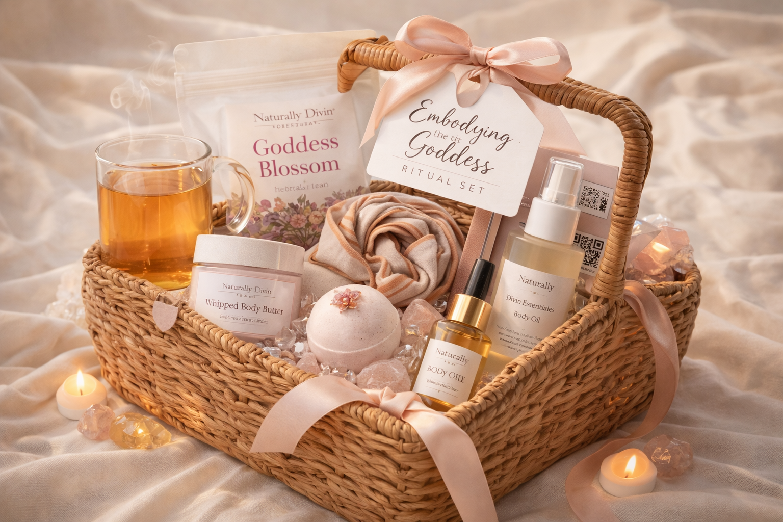 The Embodying the Goddess Ritual Set is a full-bodied self-care and spiritual embodiment experience designed to awaken the Divine Feminine through ritual, rest, and intentional presence.